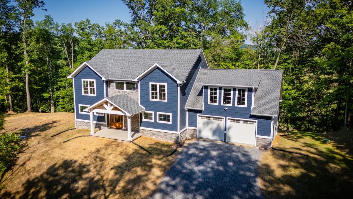 This Church Hill project is nestled on a ridge top on a 10 acre piece of property overlooking a field and a river. We were able to lower the ridge to create a perfect footprint for this 2600 sq ft, 2 level home with an unfinished, walkout basement.